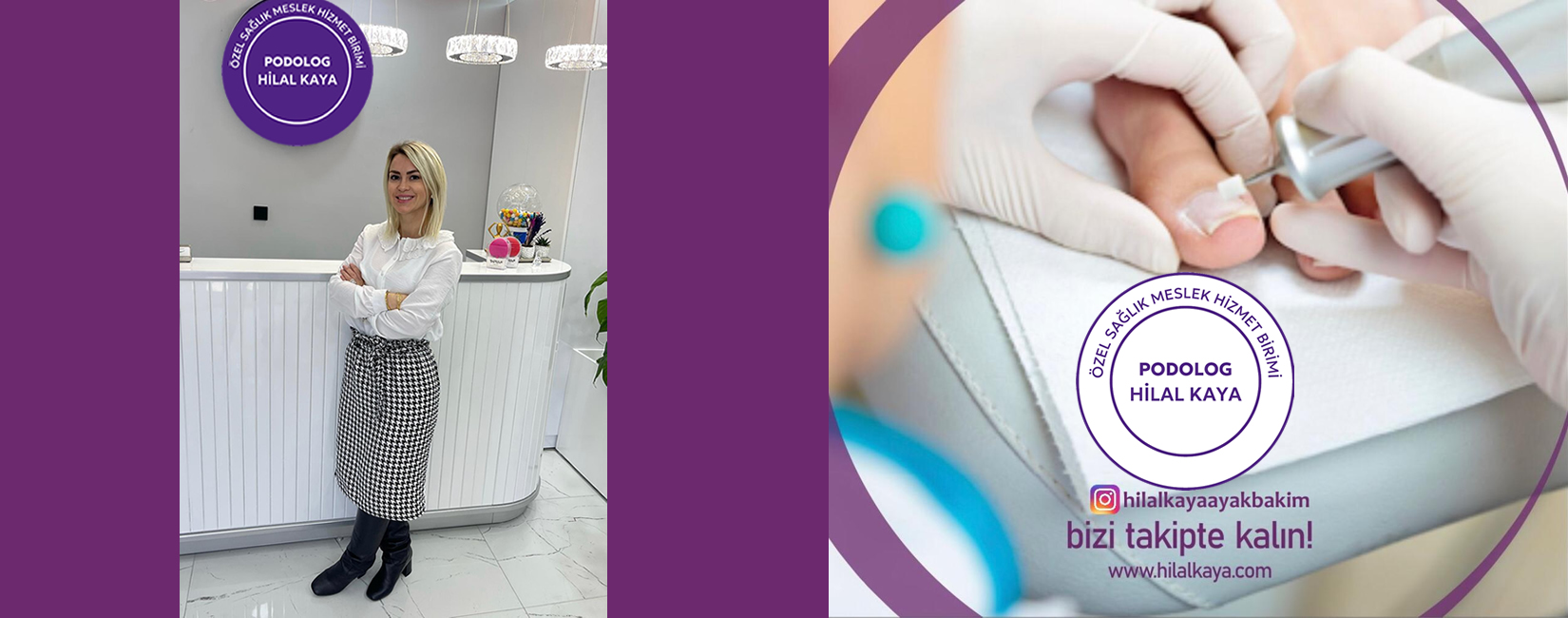 Podolog Hilal Kaya ve ekibi ile yılların tecrübesi ile sektörün ilklerinden ve ileri seviye podiatri alanın da uzmanlaÅŸmış olup; Güvenilir, saÄŸlıklı ve hijyenik bir ortamda uygulamalarımız yapılmaktadır. Alanlarında uzman olan kadromuzla danışanlarımıza kiÅŸiye özel hizmet sunulmakla beraber, steril ve son teknoloji cihazlarla müÅŸteri memnuniyetini esas alan iÅŸletmemizde; ayak saÄŸlığında tüm problemlerin mekanik temizliÄŸi ile hizmet sunmaktadır.